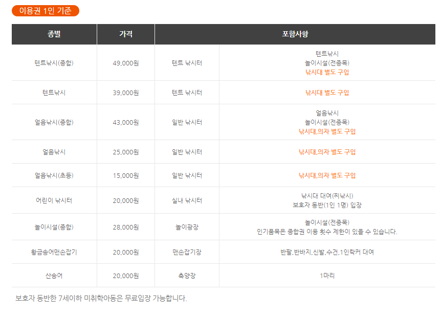 (모든 입장권,낚시용품 환불시 구매 영수증을 꼭 지참하셔야 합니다.)
