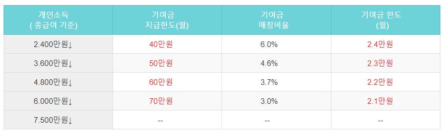 청년도약계좌 개인소득별 기여금 지급구조